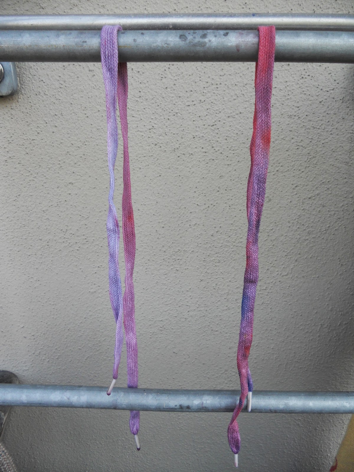 Um die Schuhe abzurunden, habe ich auch die Schnürsenkel eingefärbt. (Mit verdünnter Farbe)