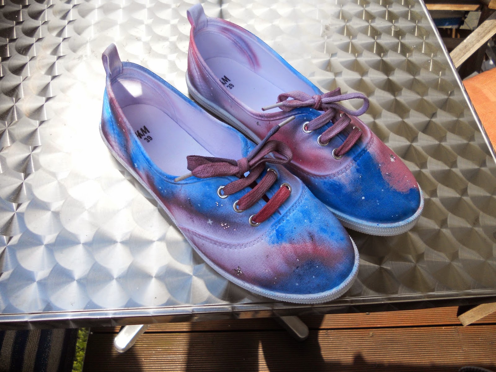 Schon seit einer Weile bin ich wie besessen von Galaxy Prints. Dieses Muster findet man aber auch überall: auf Shirts, Blusen, Leggings, Taschen und eben auch auf Schuhen.