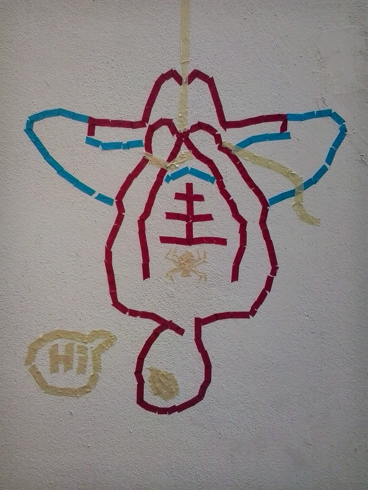 Das soll übrigens Spiderman sein ;). Wir haben nämlich als Kunsthausaufgabe bekommen, etwas an eine Wand zu tapen.