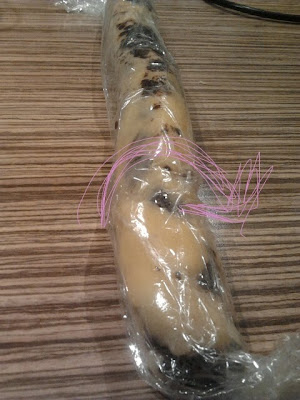 - Den Teig nun zu einer langen Rolle formen, in Frischhaltefolie einwickeln und ab damit in den Kühlschrank :-D