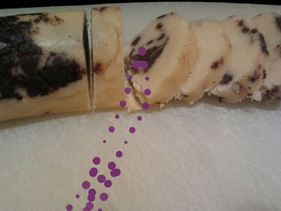 - Nach einer Stunde könnt ihr den Teig dann aus der Kälte befreien und in Scheiben schneiden (Wie dick ihr sie machen wollt, ist euch überlassen. Ihr müsst dann aber darauf achten, dass ihr die Backzeit anpasst und, dass alle Scheiben etwa gleich dick sind)